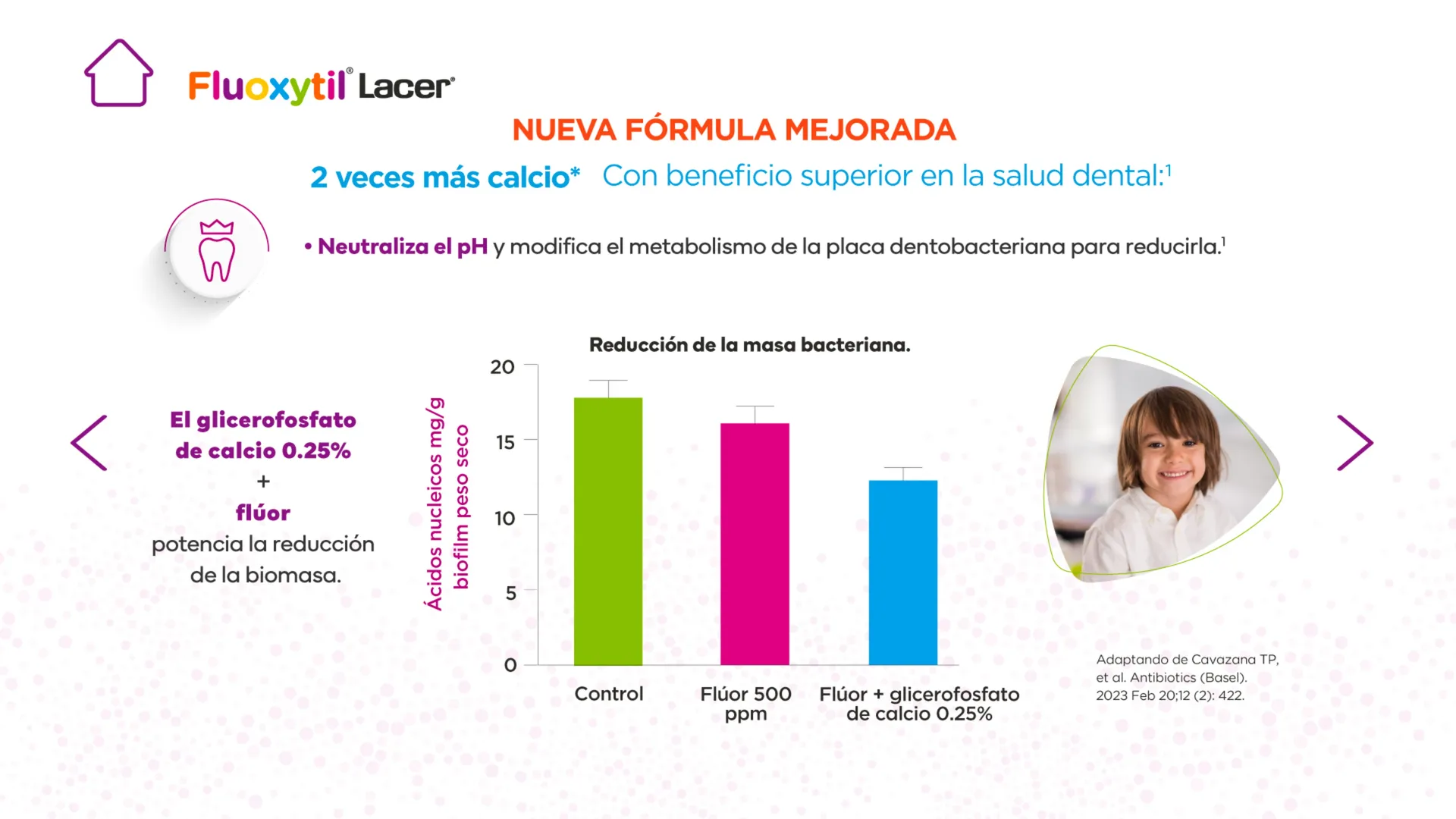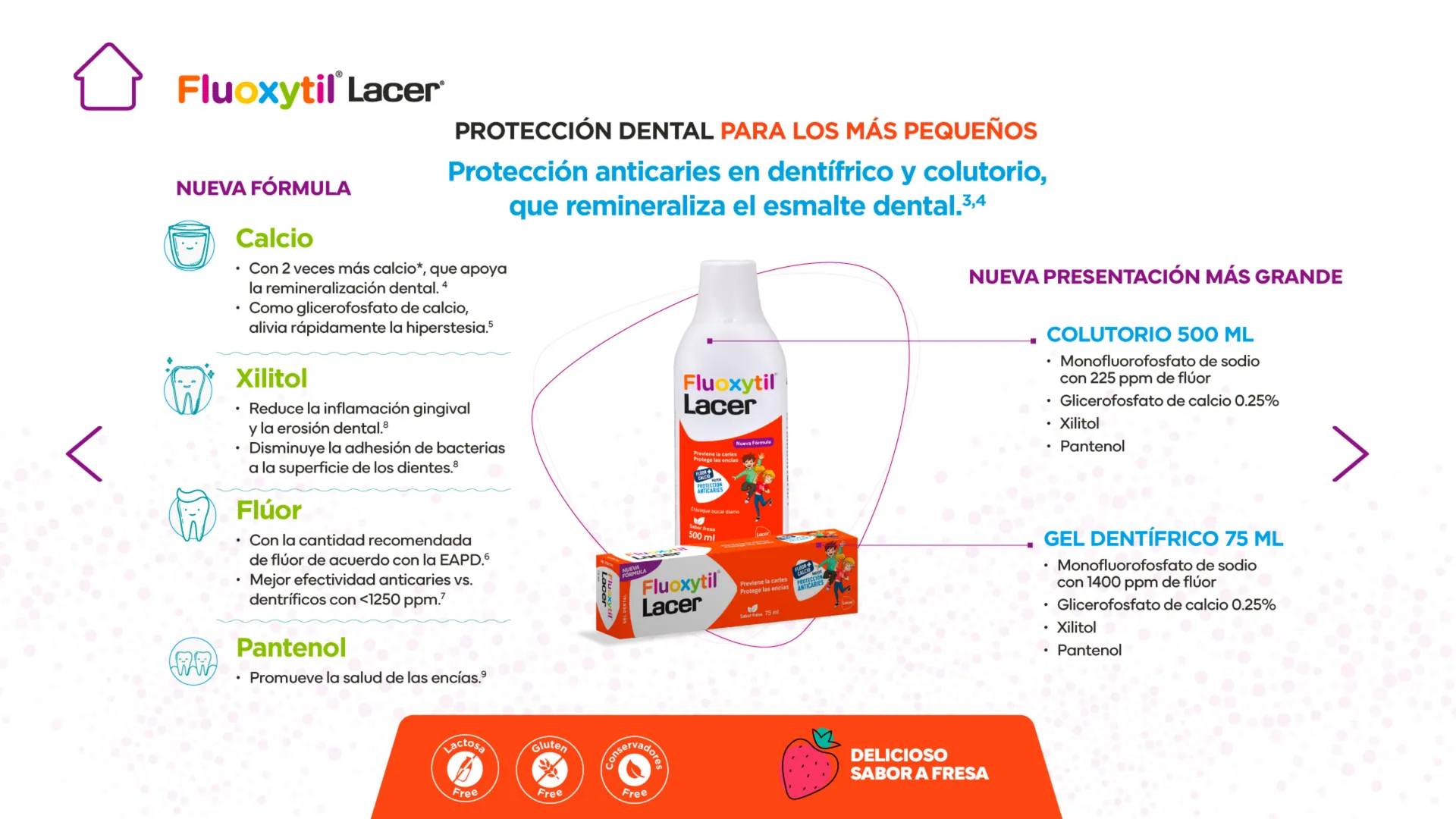 • Monofluorofosfato de sodio con 225 ppm de flúor